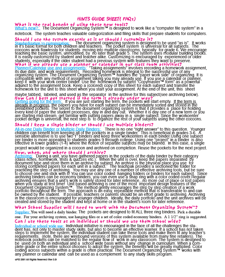 4. STRATEGIES & TECHNIQUES: Teacher/Parent Hint Sheets
